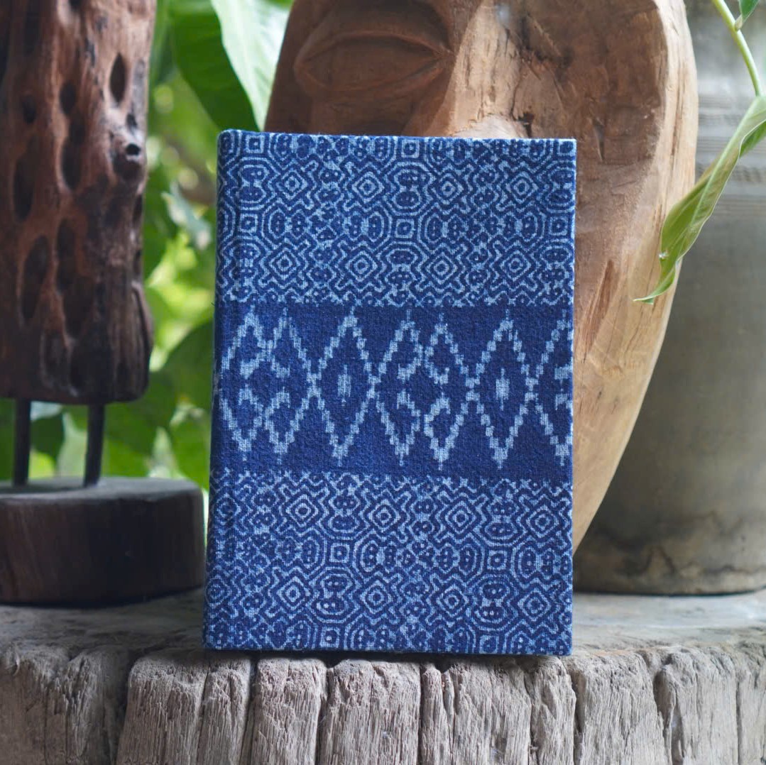 A straightforward notebook made with natural indigo dye through a detailed batik process.