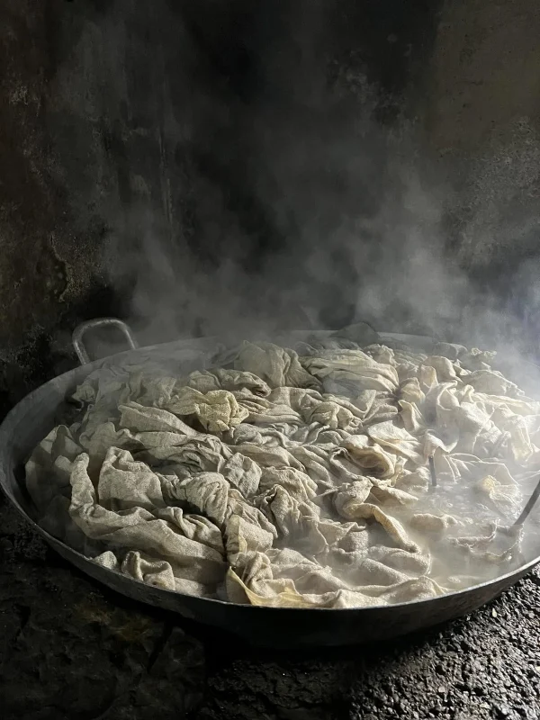 This hemp fabric is handcrafted by Hmong artisans in Northern Vietnam using traditional methods passed down through generations. Made from 100% naturally grown hemp, it is processed and woven entirely by hand—no machinery, no synthetic chemicals.