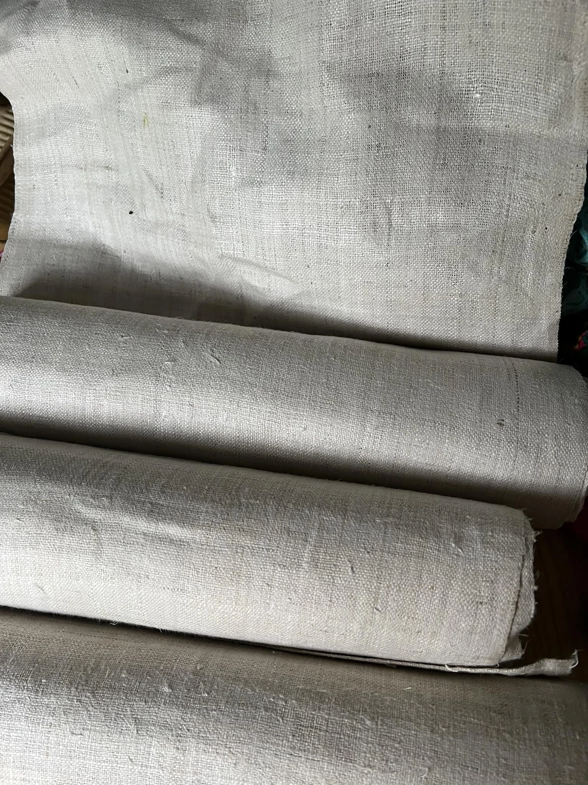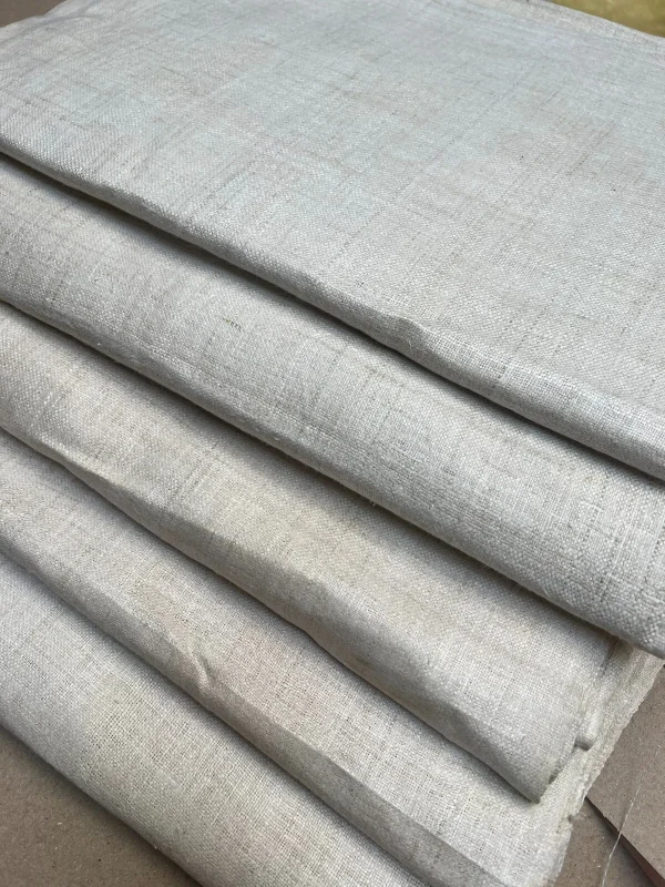 This fabric has a firm and textured surface, with the natural scent and slight irregularities that come from handmade work. It is breathable, strong, and designed to last.